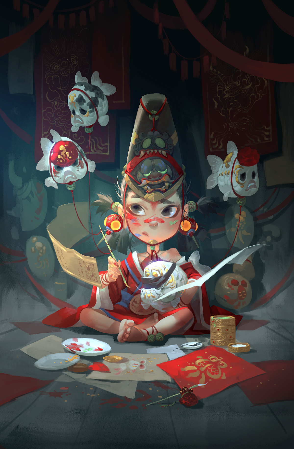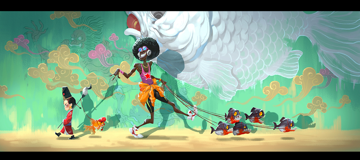 1. Project Background: Individual original illustration works. 2. Design objectives: Create original IP image "Yuliang Family". Future extension of animation, cartoons, garage kit and other derivative works. 3. Point of view: The whole set of illustrations depicts a whole new fantasy world. In this world, people coexist with all kinds of fish. Not that people live in water, but fish live on land and can travel sky. In this world there is a strange family "Yuliang" whose family is interdependent with goldfish, mysterious and great. And the families of "Yuliang" all have magic pens, and different supernatural power. 4. Innovative Feature: I like Chinese goldfish culture very much; I want to draw the beauty of Chinese goldfish by my brush, to let more people like our Chinese goldfish and Chinese traditional culture.